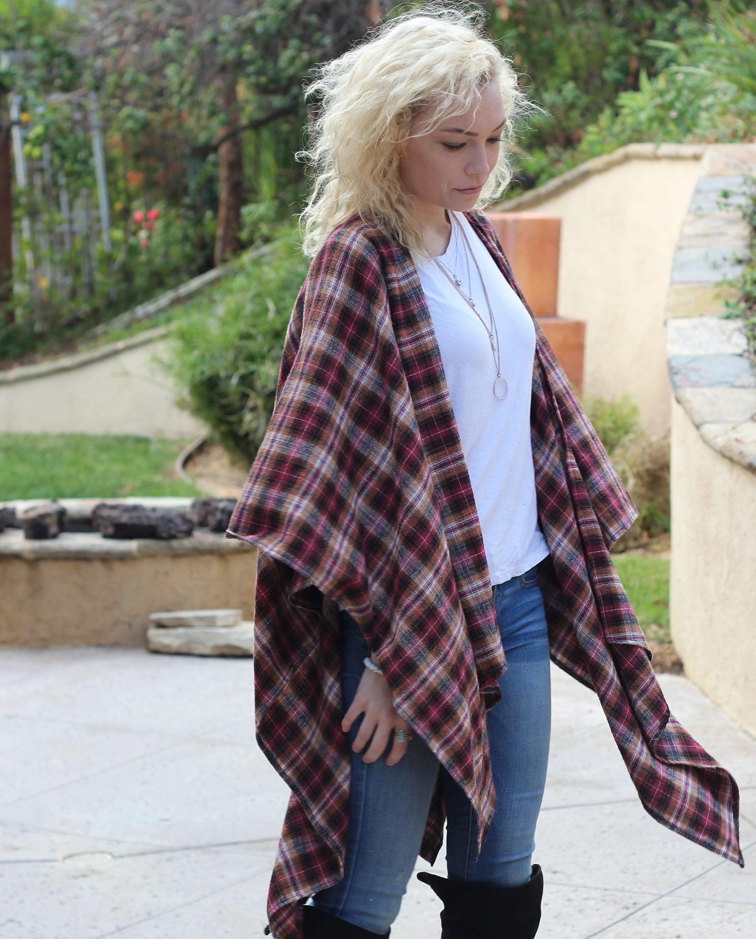 Black, Brown, Maroon, White Multi-color Plaid Flannel. This cozy shawl wrap is your go-to piece when you want that warm, comfortable, versatile, effortless yet stylish look.