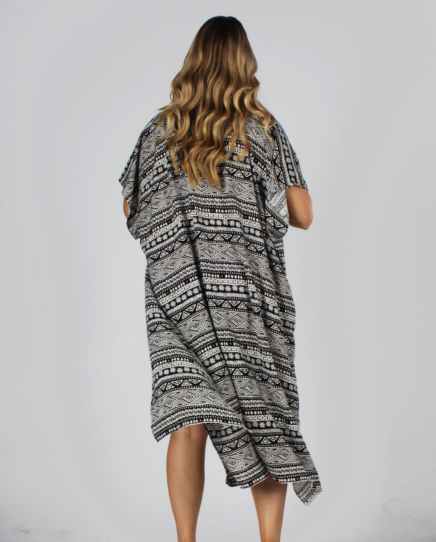 [vc_row][vc_column][vc_tta_tabs][vc_tta_section title=”Details” tab_id=”1456096124839-91fc6988-75a1″][vc_column_text]This Aztec inspired tribal print duster is sleeveless with side slits for that added flow and movement. Perfect for the summer months, at music festivals, poolside parties, the beach, when you’re out running errands… you name it, it’s a lovely piece you can wear whenever, wherever.
