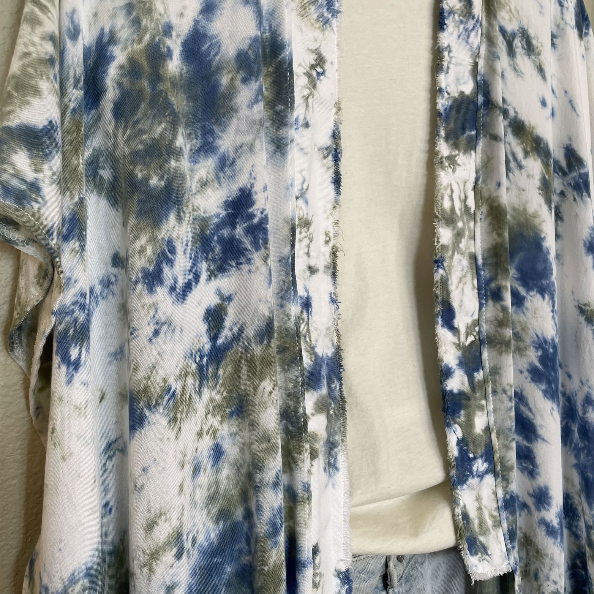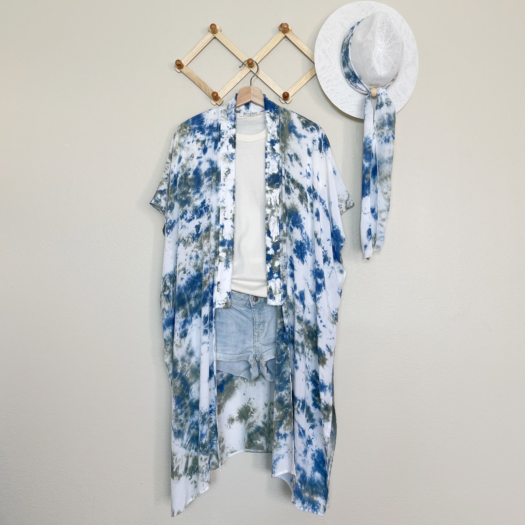 Splashes of ocean blue and sage green, a hint of whimsy, and a whole lot of styling options, this cover-up will be your go-to piece this season. It’s soft, effortless, and each one is unique.