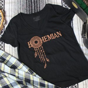 This lightweight, short sleeve, V-neck tee is made of cotton and modal for a super soft and comfortable feel. It is fitted to the female silhouette. For a loser fit, we recommend going one size up.