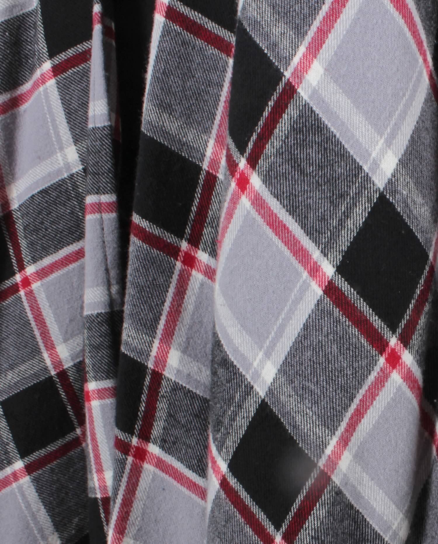 [vc_row][vc_column][vc_tta_tabs][vc_tta_section title=”Details” tab_id=”1456096124839-91fc6988-75a1″][vc_column_text]Black, Gray, Red Multi-color Flannel Plaid.