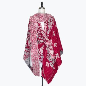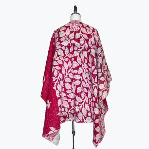 We created this cover-up using an authentic lightweight kantha quilt made from pre-loved vintage 100% cotton sarees, and re-imagined it into a wearable, multi-functional piece. Each one is unique.  More about our Kantha fabric