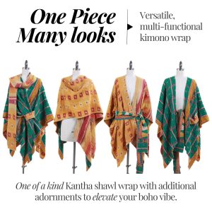 One of a kind Kantha shawl wrap with additional adornments to elevate your boho look. Includes: