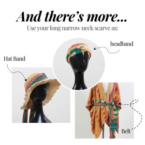 • A long, narrow neck scarf that can also be used as a belt, head or hat band