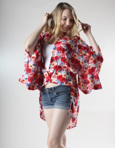 [vc_row][vc_column][vc_tta_tabs][vc_tta_section title=”Details” tab_id=”1456096124839-91fc6988-75a1″][vc_column_text]Our latest cropped front design. It is flirty; It is unique; It is a piece you could wear any day, anywhere.  A Kimono that infuses traditional design with modern style, bringing you a bohemian look that is truly unique.