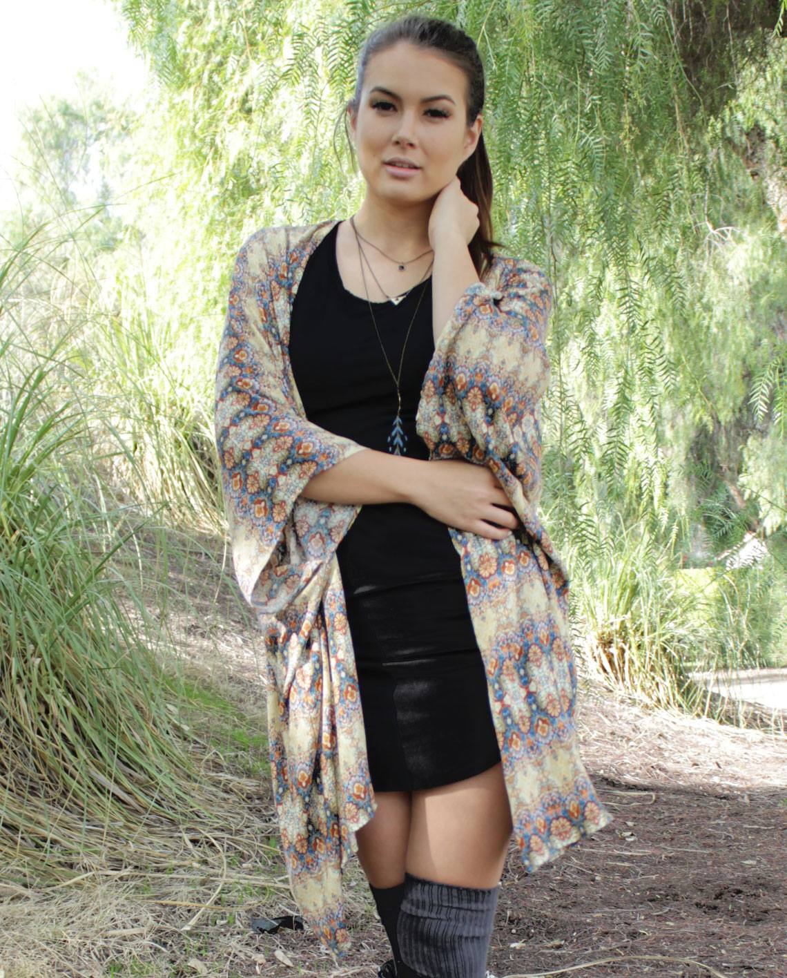 [vc_row][vc_column][vc_tta_tabs][vc_tta_section title=”Details” tab_id=”1456096124839-91fc6988-75a1″][vc_column_text]This oversized open front kimono coverup is loose fitting with lots of movement; comfortable with an effortless yet stylish look. It goes great with shorts, leggings, jeans, mini-dress, or as a coverup over bathing suits. Yes, it’s a piece you can wear anywhere and enjoy year round.