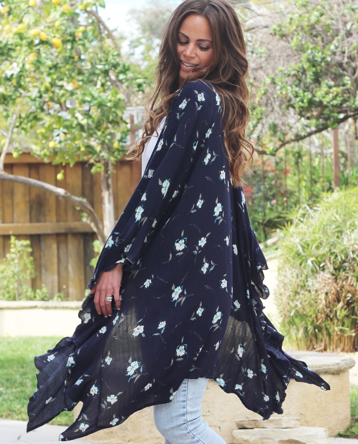 [vc_row][vc_column][vc_tta_tabs][vc_tta_section title=”Details” tab_id=”1456096124839-91fc6988-75a1″][vc_column_text]Wrap yourself in this oversized boho kimono with ruffles. It is loose fitting with lots of movement, comfortable with an effortless yet stylish look.