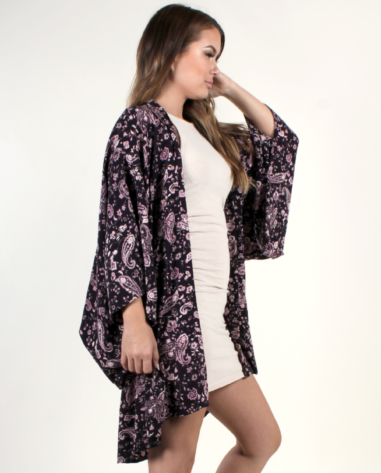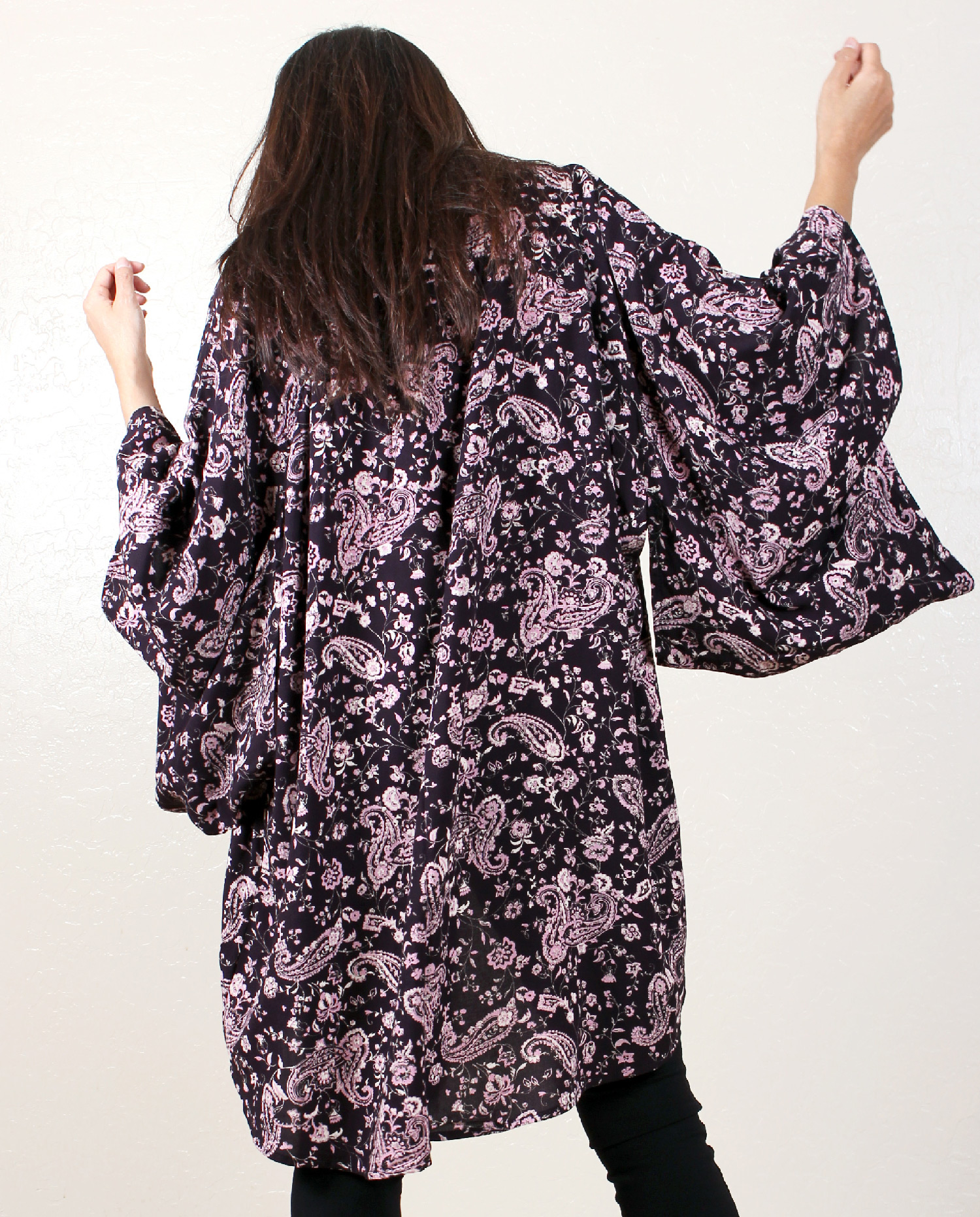 Boho kimono that infuses old traditional design with modern style, bringing you a bohemian look that is truly unique.  The paisley print gives this piece a hippie, retro vibe.