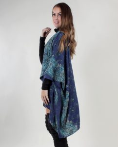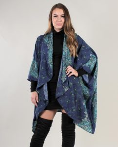 [vc_row][vc_column][vc_column_text]This oversized cardigan cover-up features a cascade fold over collar that effortlessly drapes down the front of your body. It is elegant and chic and the paisley print adds a bohemian flair to this piece.