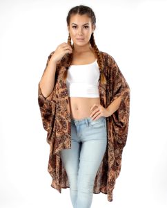 You can easily style this kimono with your existing wardrobe, from casual to chic. The brown paisley print gives this piece a 70s retro hippie vibe.