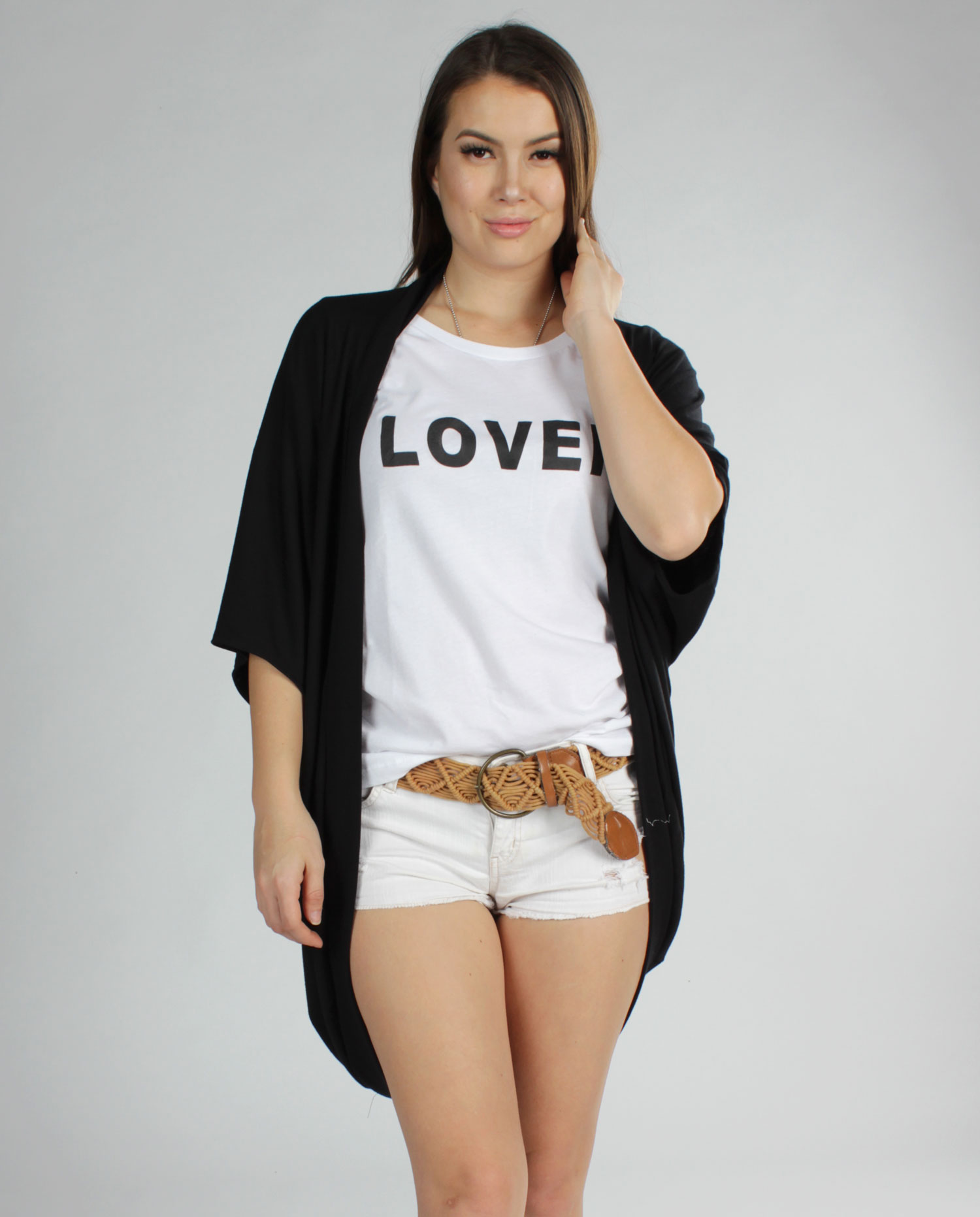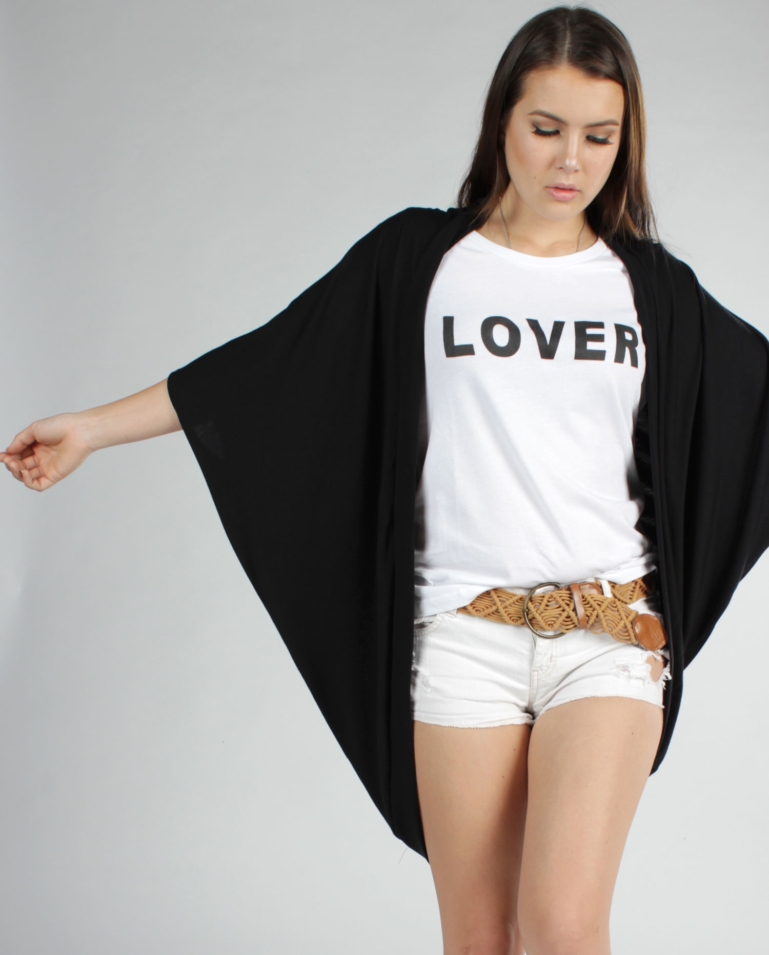 Wrap yourself in this lightweight jersey cocoon cardigan when you want to add a little style to your outfit. It is comfy, easily styled with jeans, leggings, shorts, or over lounge or workout wear. Perfect for spring/summer. Slouchy fit that drapes to a cocoon silhouette.
