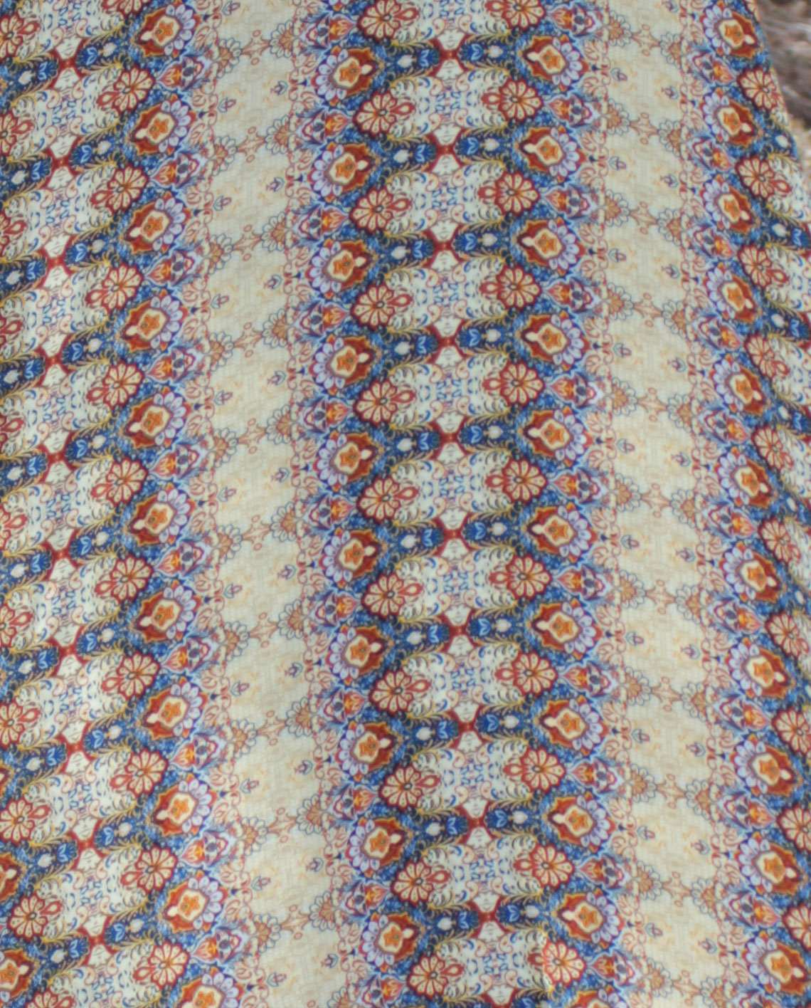Lightweight, sleeveless, elegant, ethnic print duster jacket with side slits. Flowy and effortless.