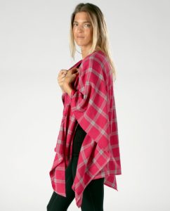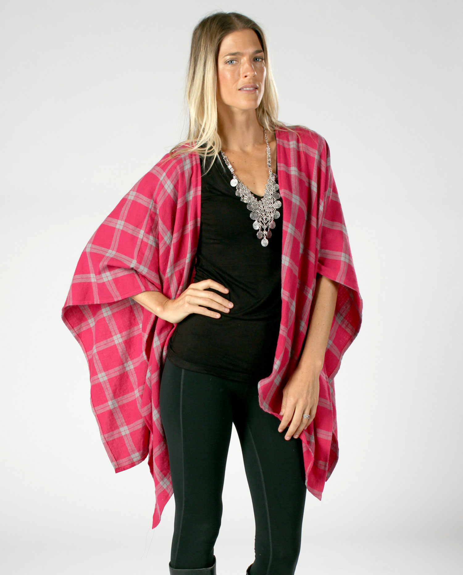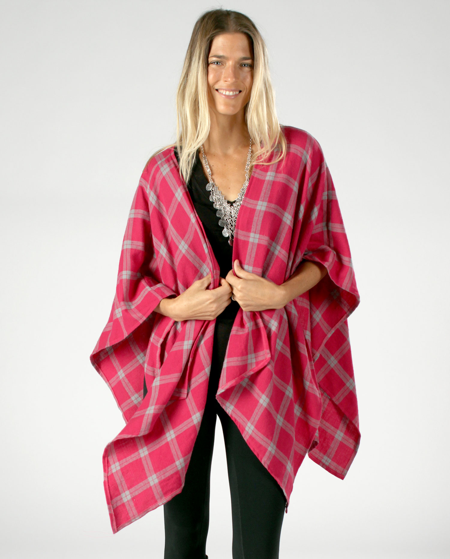 Fuchsia/Grey Multi-color Plaid Flannel. This cozy shawl wrap is your go-to piece when you want that warm, comfortable, versatile, effortless yet stylish look.
