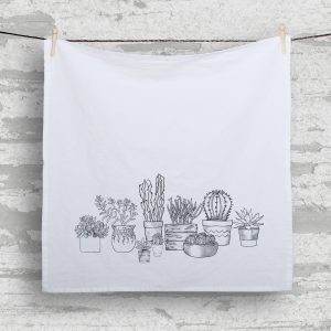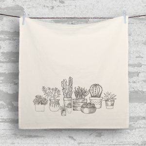 Flour sack towels (Tea Towels) with a pop of art. We hand silkscreen each towel with non-toxic, water-based ink.