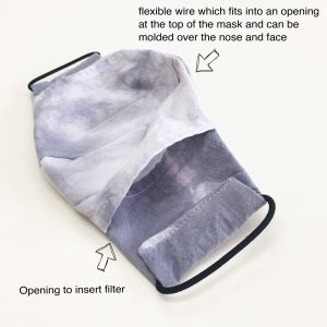 There is also an opening to insert additional filter, tissue, paper towel, etc. We are including a piece of shop towel fabric which has been recommended as a non woven filtering option by Peter Tsai, the inventor of the N-95 mask fabric, as appeared in recent article in the Washington Post (See more info under the About The Filter tab). This fabric can be hand washed for reuse.