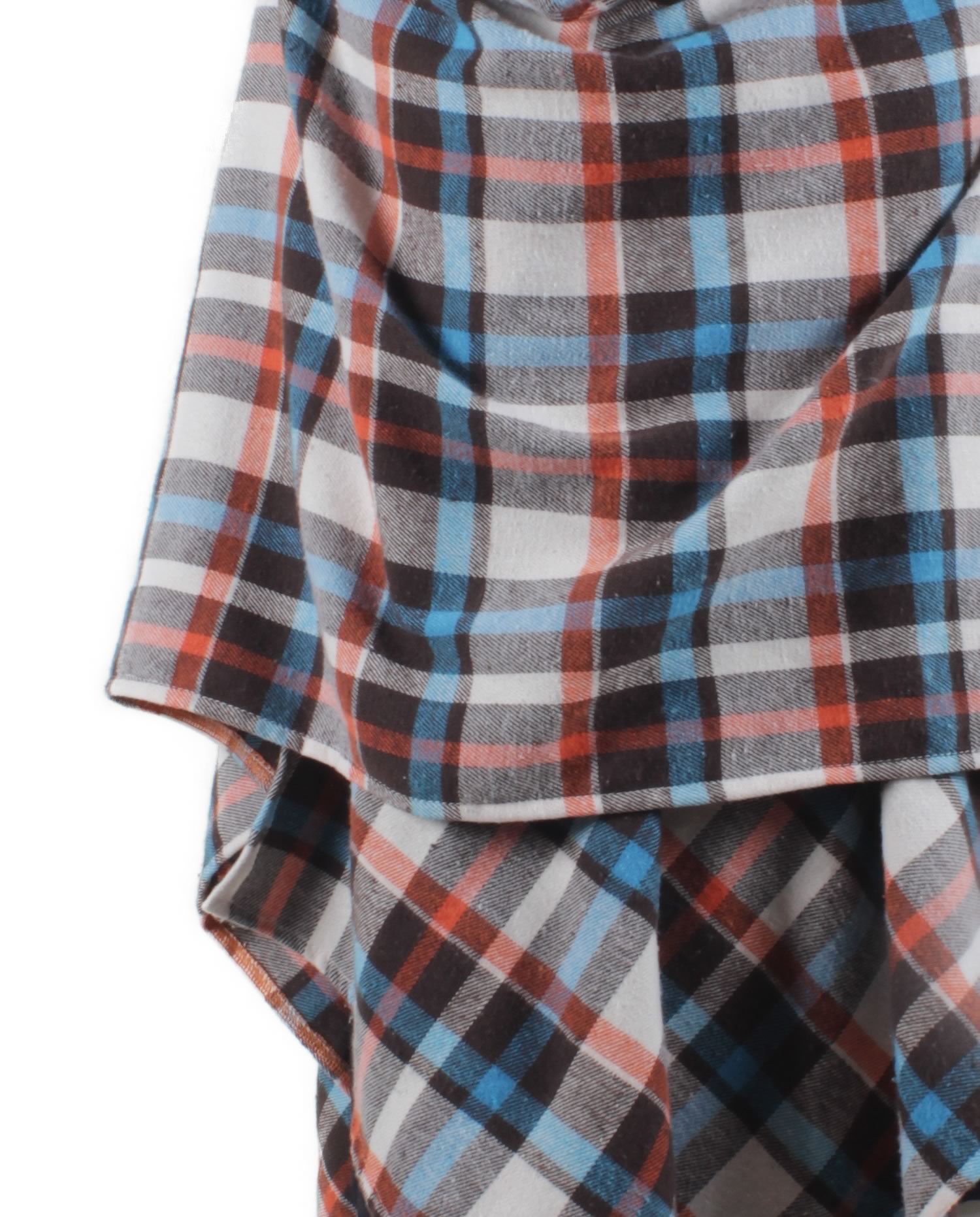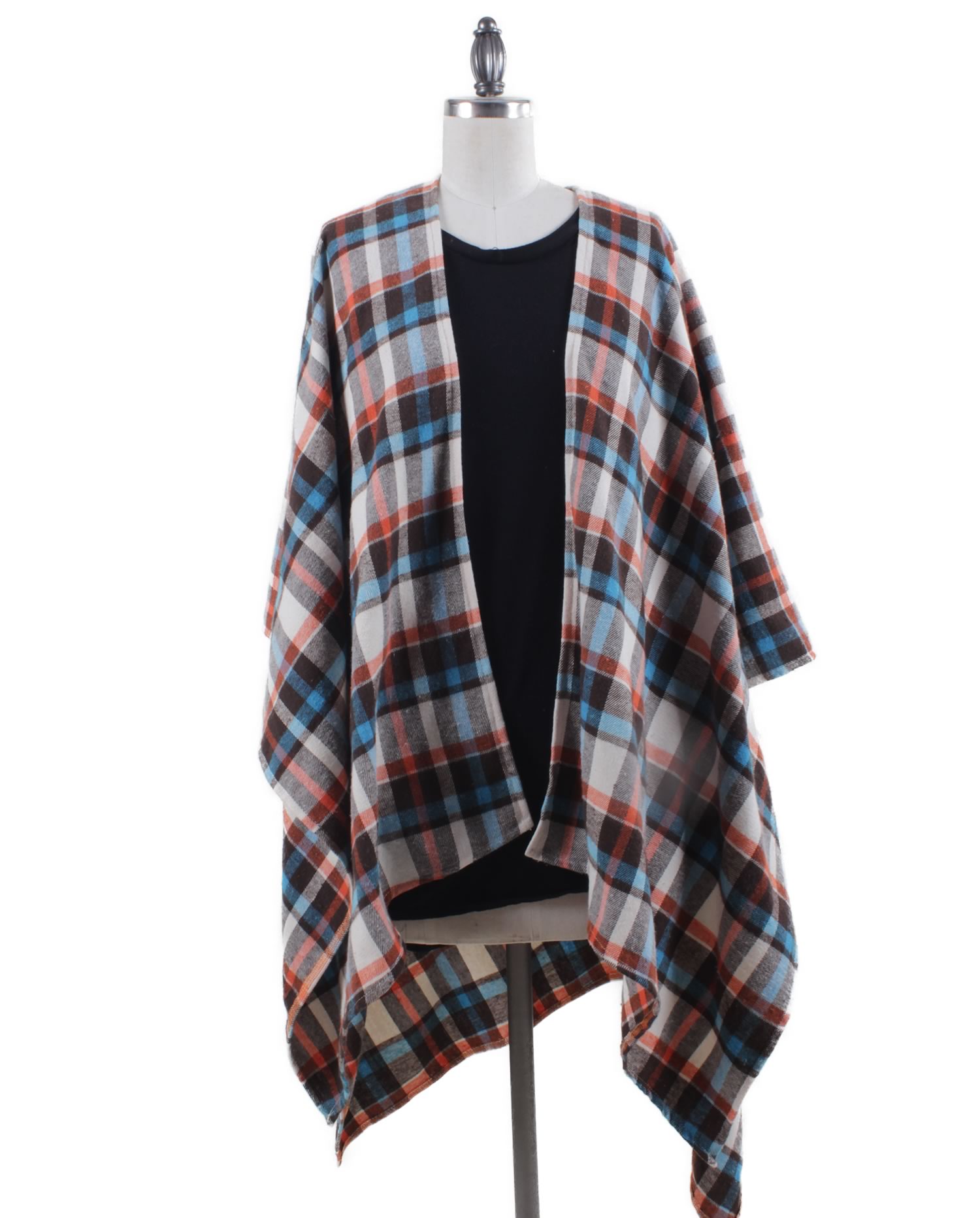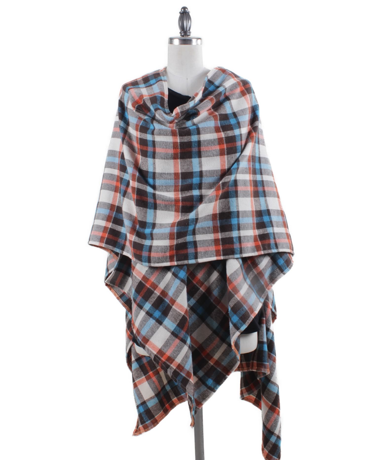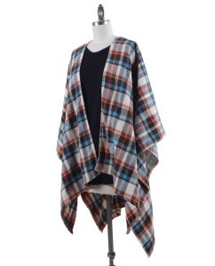 Brown, Cream, Blue, Orange Multi-color Plaid Flannel. This cozy shawl wrap is your go-to piece when you want that warm, comfortable, versatile, effortless yet stylish look.